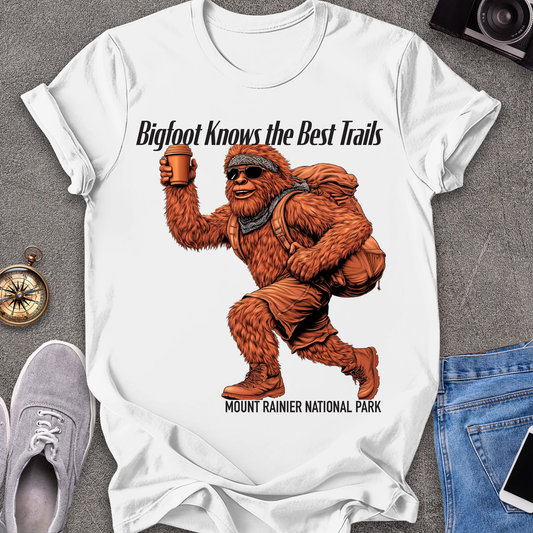 Bigfoot Knows The Best Trails - Mount Rainer National Park, Washington State TX T-Shirt