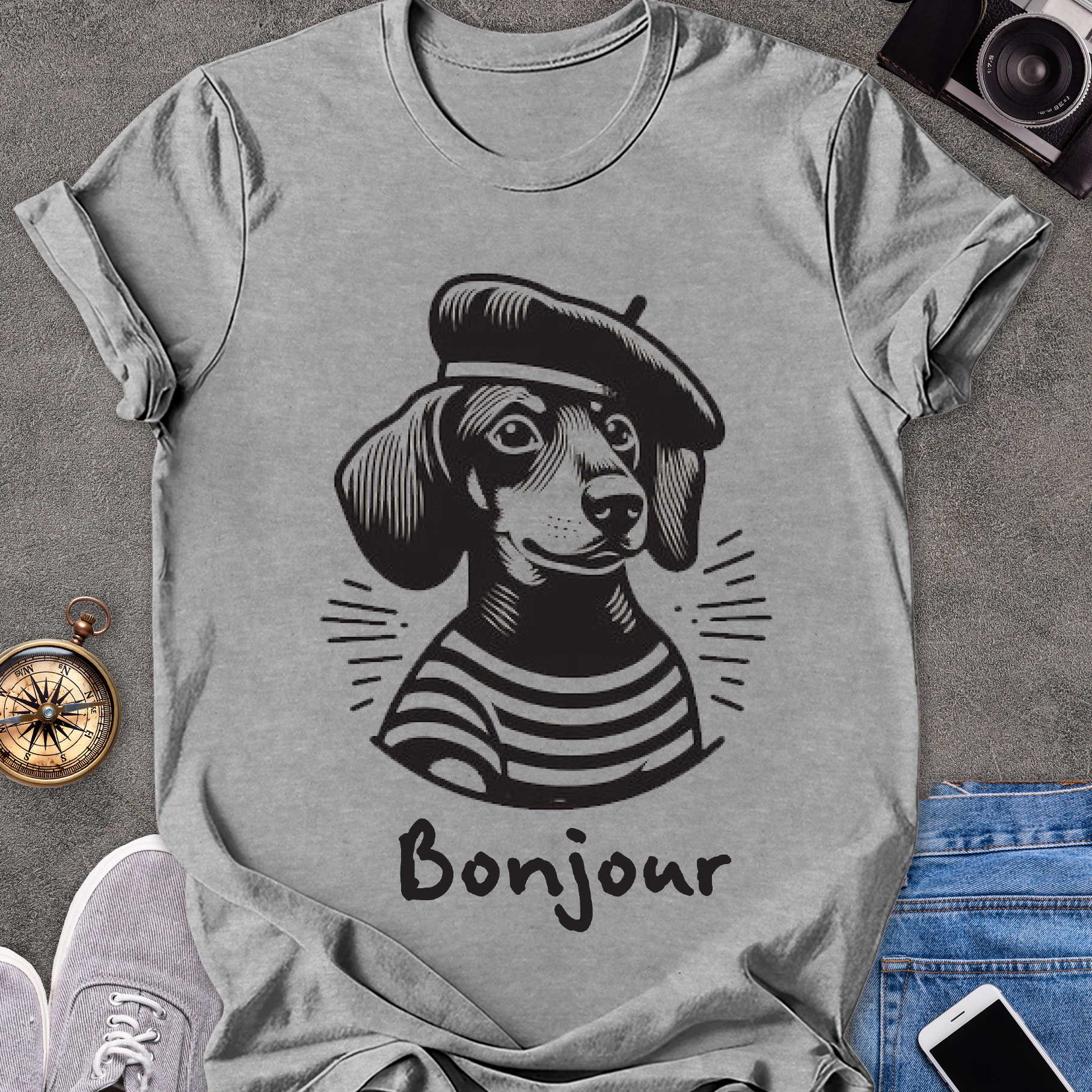 Bonjour | Unisex Softstyle T-Shirt | French Daschshund Travel Tee