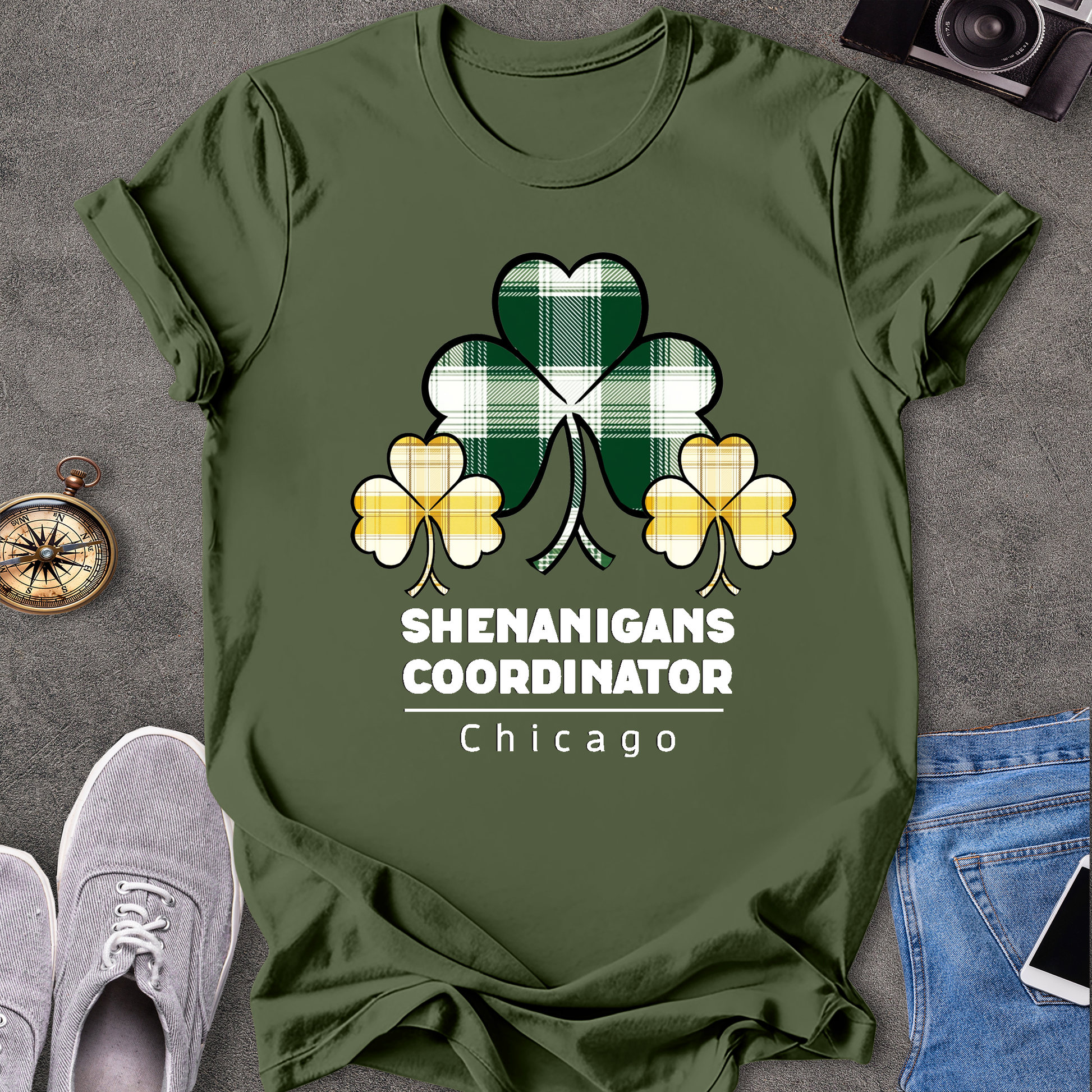 Chicago Shenanigans Coordinator T-Shirt - with yellow and green shamrocks