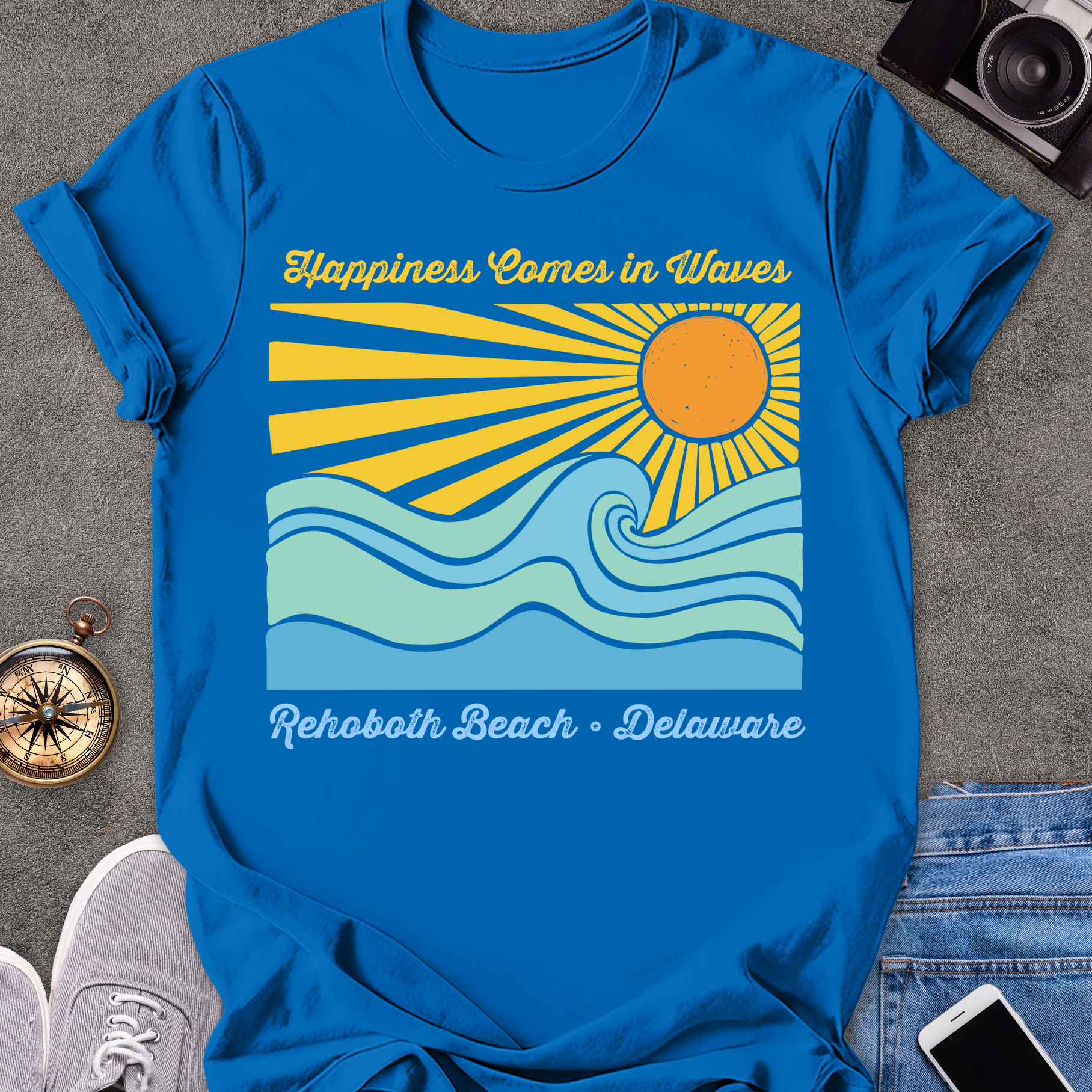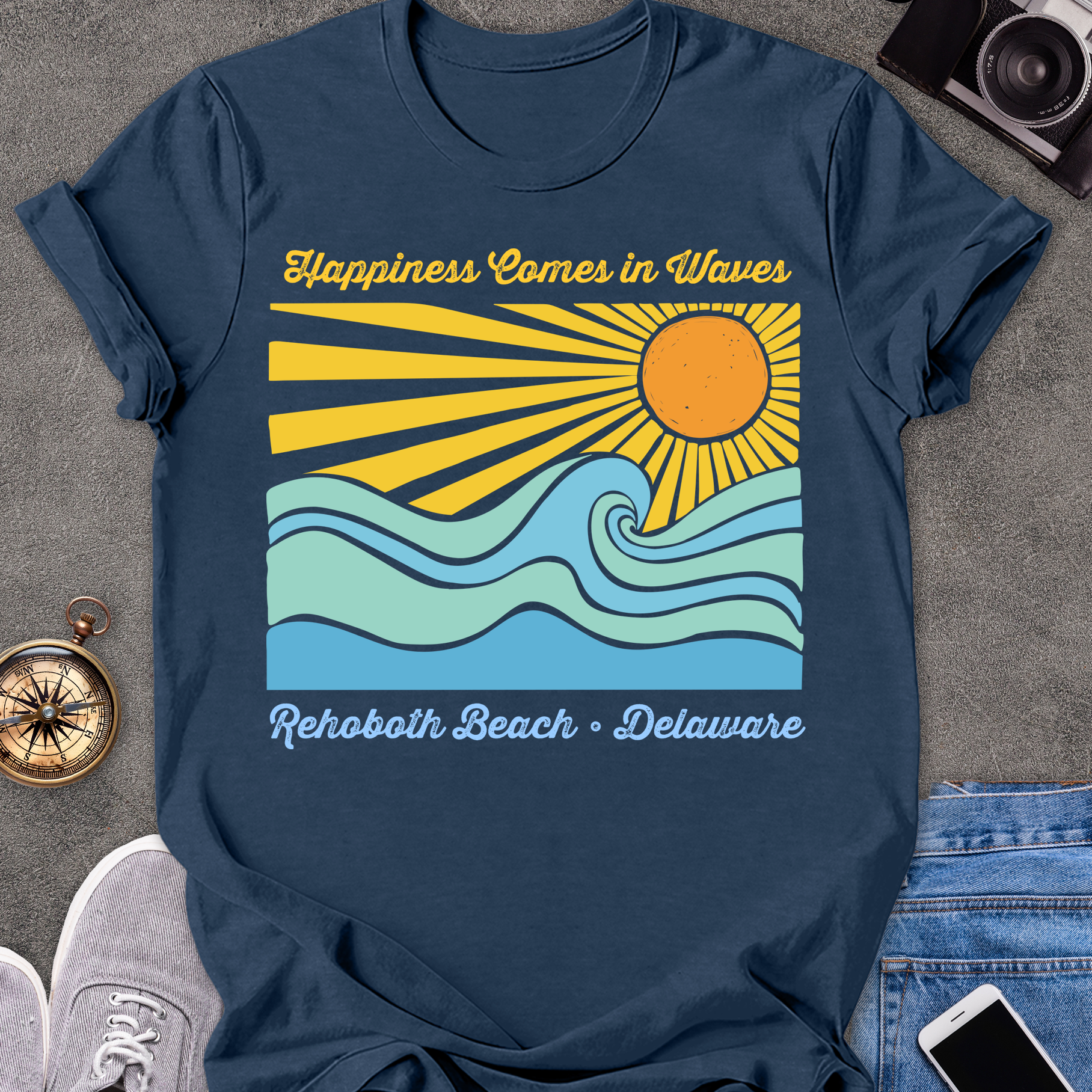 Happiness Comes in Waves-Rehobath, Delaware | Unisex Softstyle T-Shirt | Fun and Casual Beach Lover Tee