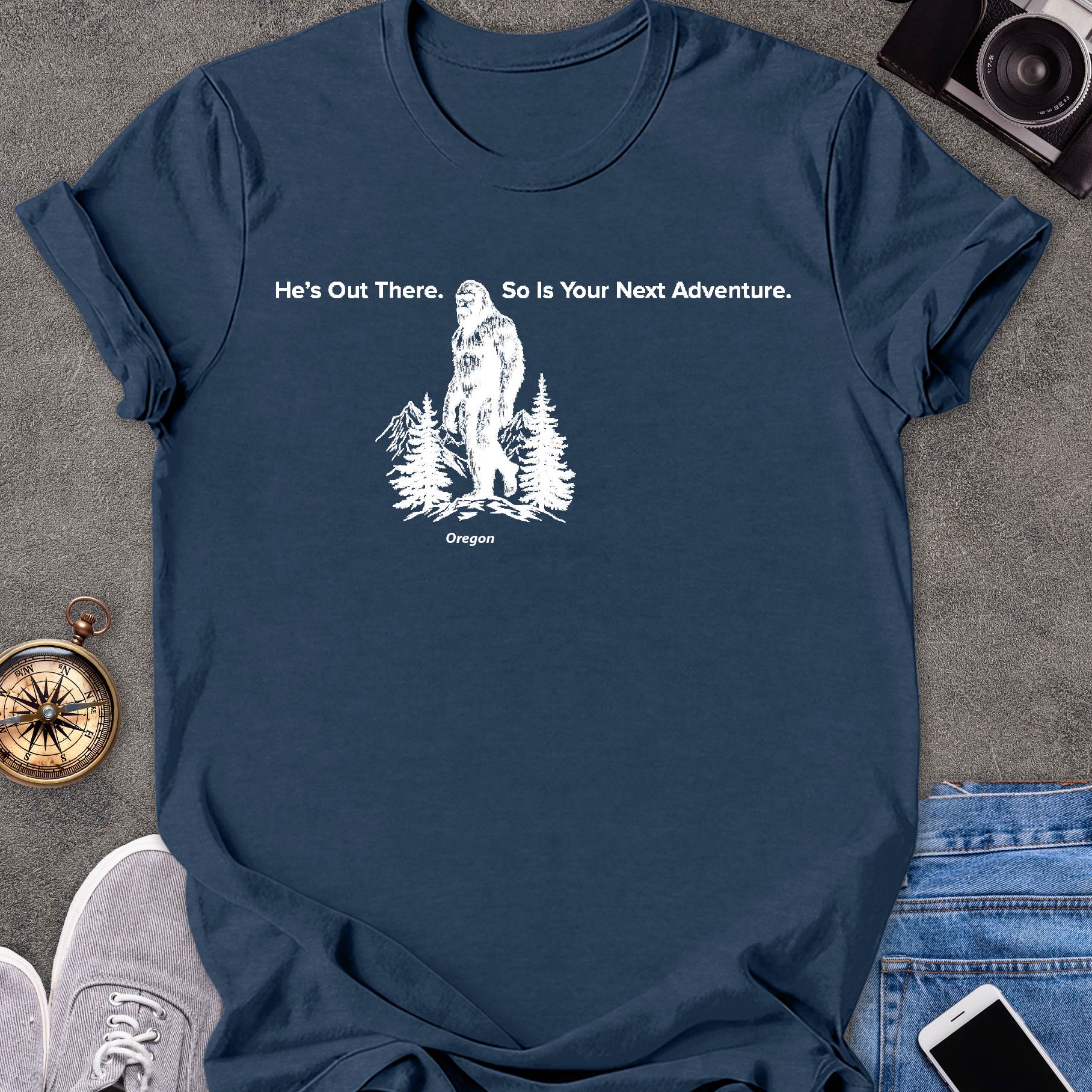 He's Out There. So Is Your Next Adventure - Oregon | Unisex Softstyle T-Shirt | Oregon Bigfoot Travel Tee