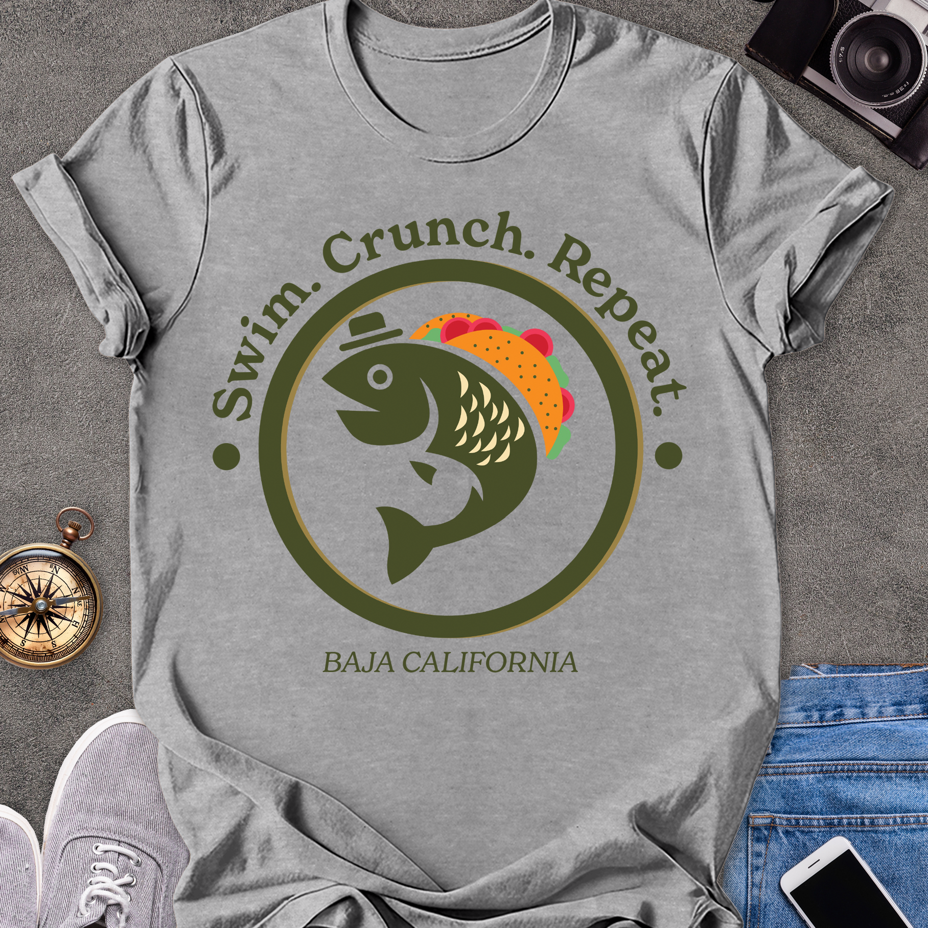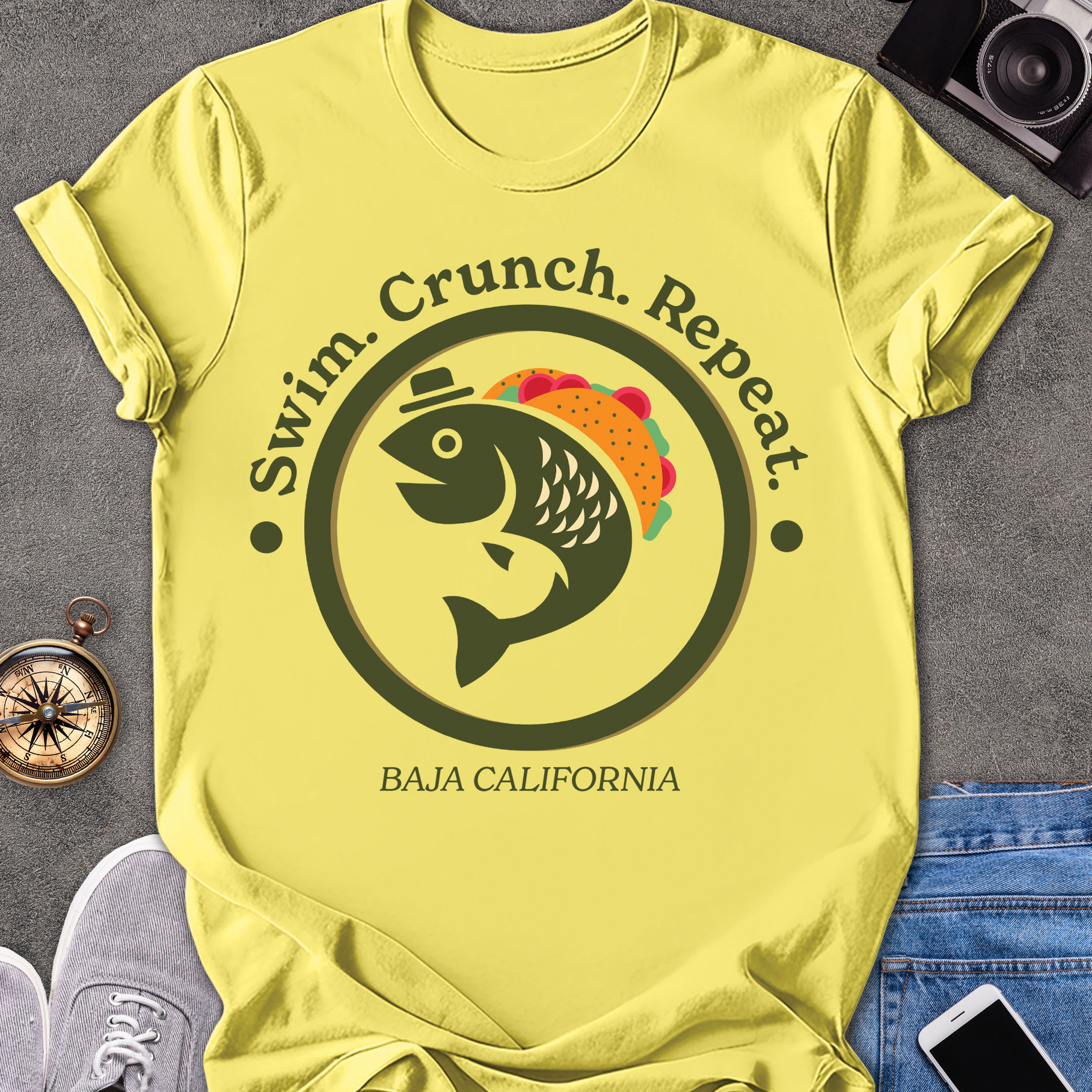 Swim. Crunch. Repeat. Baja California | Unisex Softstyle T-Shirt | Foodie Travel Tee